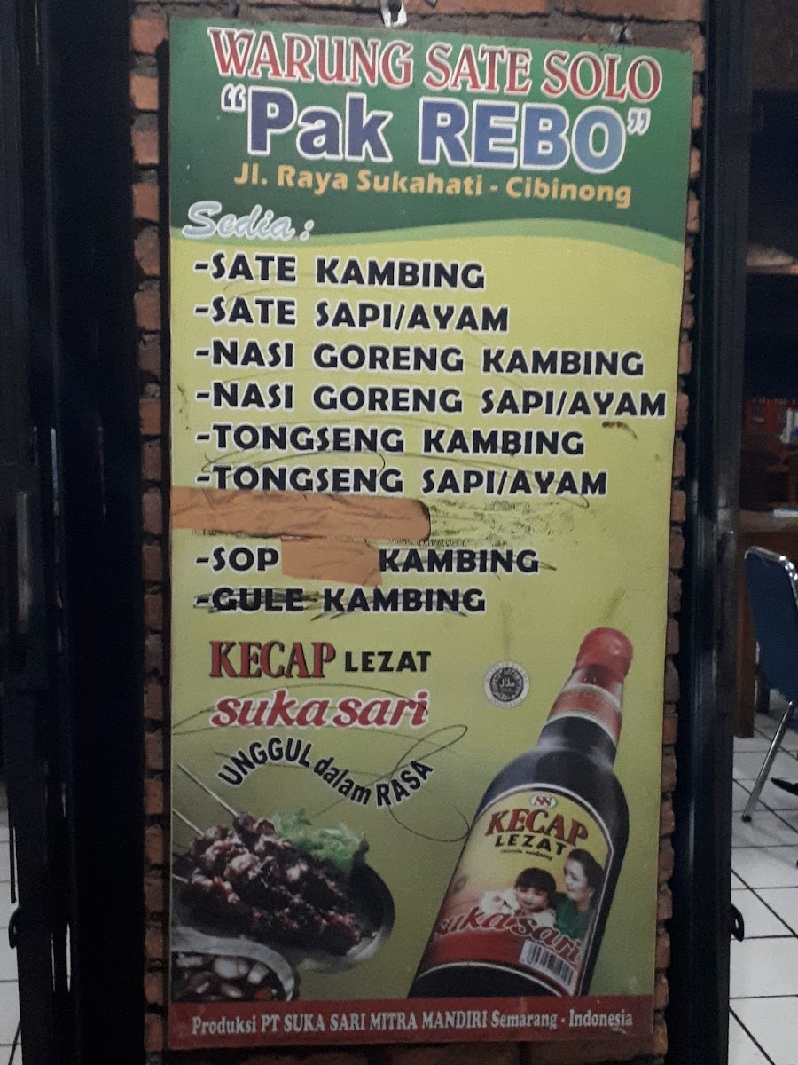 Warung Sate Solo Pak Rebo - Cibinong is a beloved satay spot located on Jl. Raya Sukahati in Bogor. This humble warung serves authentic Satay Kambing Solo-style, famed for its rich, sweet soy sauce and a delightful kick of chili. The tender mutton, though occasionally a bit charred, melts nicely, delivering deep, smoky flavors that stay memorable. Alongside, the Tongseng Kambing stands out—a perfect blend of spicy and sweet, warmly comforting the palate with every spoonful. The menu also features sate ayam, which offers a milder taste but holds its own in quality.